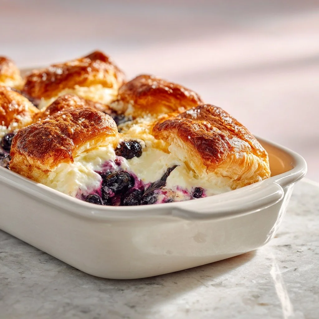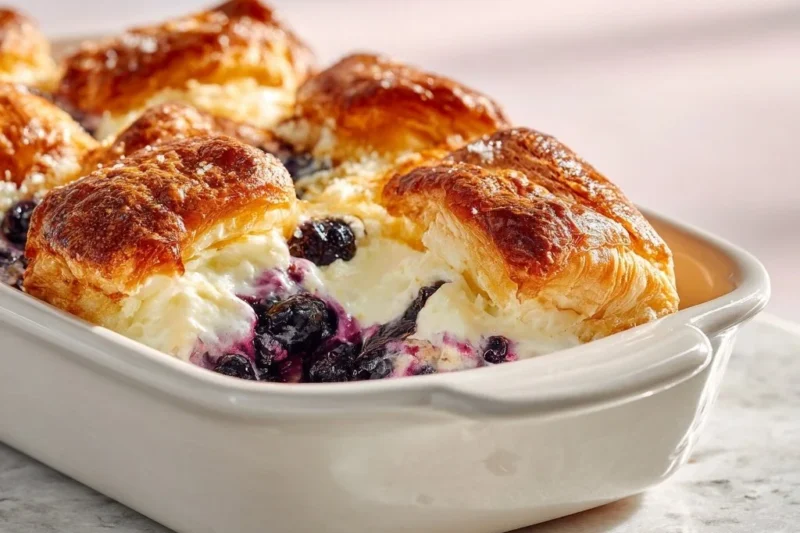 Blueberry Cream Cheese Croissant Casserole