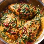 Creamy Tuscan Chicken with Spinach, Artichokes, and Sun-Dried Tomatoes is a delicious and uncomplicated dish that shines in both taste and presentation. It is perfect for any occasion, whether a quick family dinner or a fancy gathering.