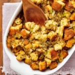 This easy stuffing pairs well with a wide variety of dishes. Traditional options include turkey or chicken, making it a staple during holidays like Thanksgiving. However, it’s versatile enough to accompany many other meals.