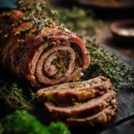 Not only is it visually appealing, but it is also packed with rich flavors that come from marinating the pork and the herbs included in the stuffing. There is a comforting warmth to a dish like this, making it ideal for colder months or festive occasions.