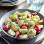 This recipe is easy to prepare, using common ingredients that you might already have on hand. It combines the freshness of baby potatoes, crisp celery, and aromatic herbs, making it not just tasty but also appealing to the eye.