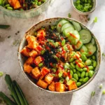 Once your salmon and grains are ready, it’s time to assemble your bowls. Start by layering the cooked farro or rice as the base. Next, top the grains with a generous portion of the baked salmon. Add in slices of cucumber, a handful of cooked edamame, and freshly sliced avocado to create a vibrant and filling dish. Garnish your creation with sliced green onions and broken pieces of dried seaweed for added flavor and texture.